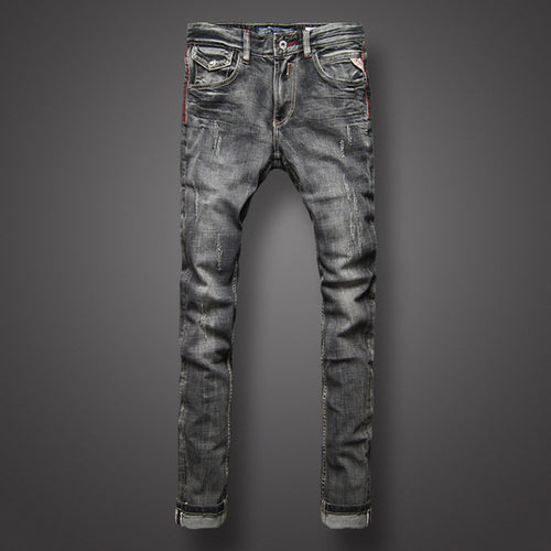 Black Gray Color Denim Mens Jeans High Quality Italian Style Retro Design Slim Fit Ripped Jeans