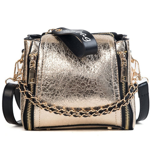 Bright Women Bags Small Chain Shoulder Bag Ladies Luxury Pu Leather Handbags Casual Zipper Crossbody Bags Wide Strap Sac 2021