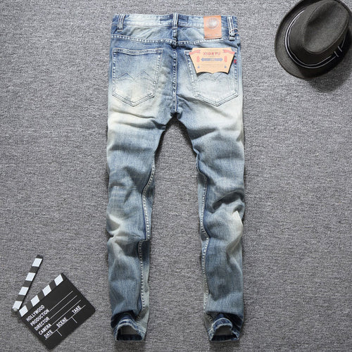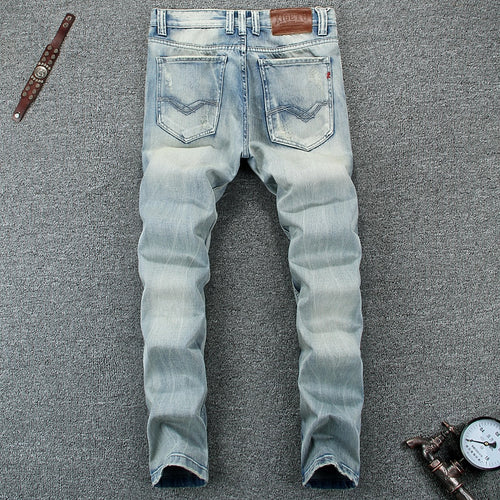 Summer Style Light Blue Color Fashion Mens Jeans High Quality Slim Fit Ripped Jeans For Men Buttons Pants Brand Biker Jeans Men