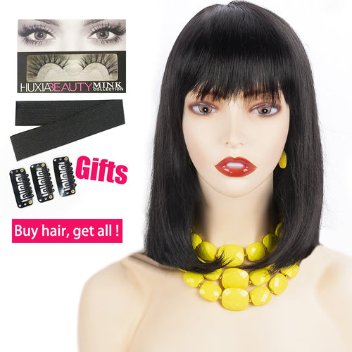 Straight Bob Wig with Bangs Cheap Human Hair Wigs with Bangs for Black Women Brazilian Full Machine Wigs Can Be Permed & Dye