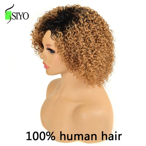 Siyo 100% Human Hair Wigs for Black Women 1b/27 Ombre Short Curly Brazilian Remy Human hair Full Wig with Hair Bangs Afro Curl